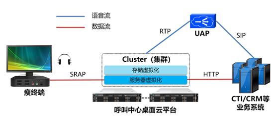 高清呼叫体验。深信服SRAP协议针对双向语音提供特殊的优化手段,从而实现VOIP数据流的高质量传输,客服人员只需要在桌面云终端上连接耳麦,即可进行高清语音呼叫与接听。