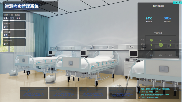 信锐医疗空间管理系统由温度湿度调节系统、空气质量调节系统、智能照明管控系统、智能电器管控系统、远程数据监测系统、智慧用电管理系统、智能策略控制系统七大系统构成一套完整的空间管理系统。