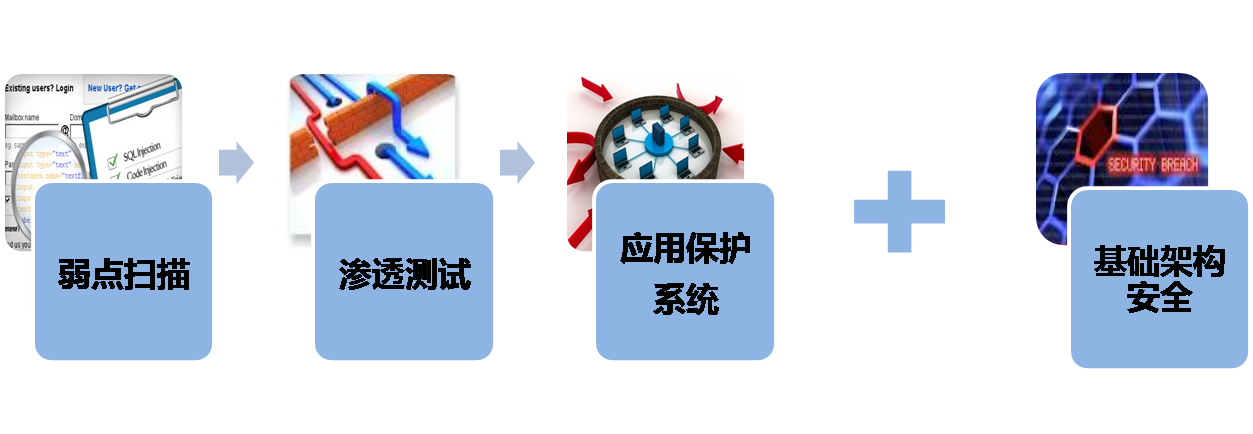 睿宏科技提供的应用安全解决方案,一方面,能够保障基础架构安全(网络防火墙、入侵保护等)的有效性,另一方面,通过应用扫描、渗透测试、应用保护系统等环节进行整个应用安全生命周期的安全防护。